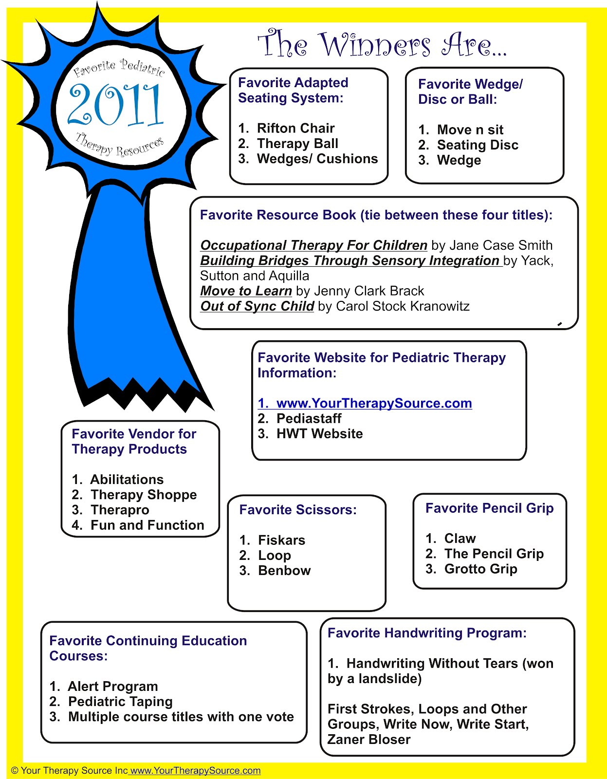 The results are in. Your favorite therapy resources and products from 2011… (if you can not view you can download the winners at YourTherapySource)
