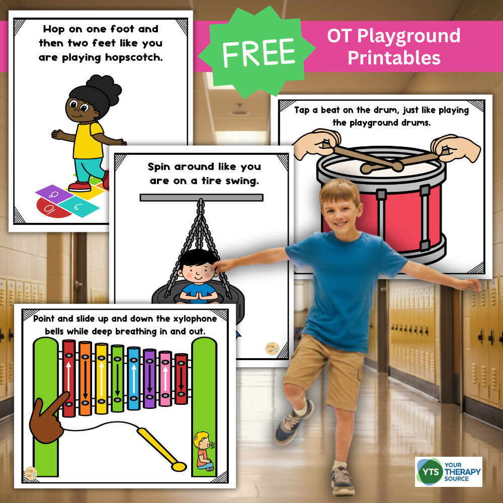 Access your free four-page set of OT Playground Brain Breaks below. These easy-to-use printables are perfect for your next sensory path, movement break, or motor warm-up.