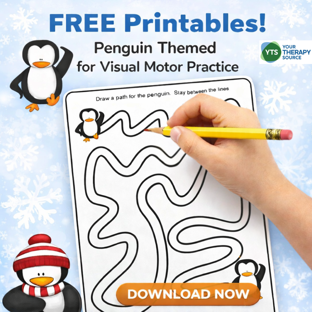 Penguin visual motor practice activities are a fun way to help students strengthen pencil control, hand-eye coordination, and visual tracking skills. This set of three free penguin-themed printables gives children engaging opportunities to draw paths, stay within boundaries, and coordinate their eyes and hands while completing playful winter-themed challenges. These worksheets are simple to prep, easy to use, and work well across classroom, therapy, and home settings. The free sample pages are from the Complete Penguin Pencil Challenges Packet.