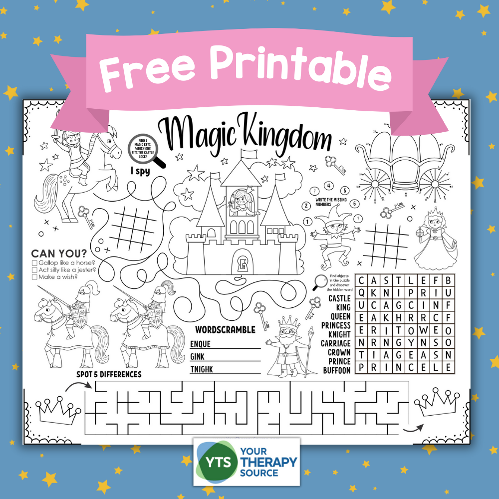 Children can explore castles, knights, princesses, and puzzles while working on foundational skills that support learning and participation across settings. This free fairy tale worksheet is part of the complete Brain Boosting Puzzles collection.