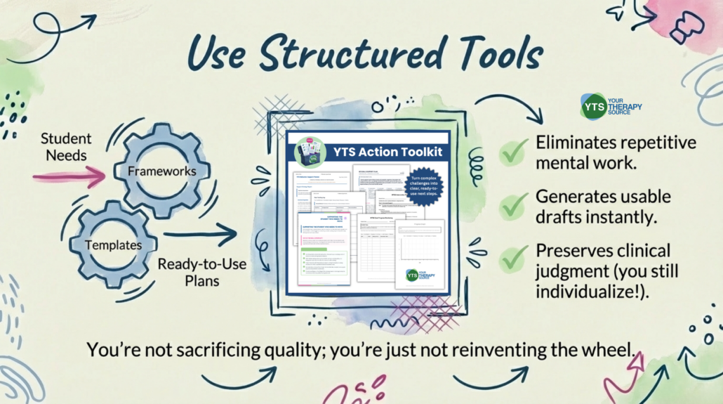 When you have tools that guide you through this process with clear prompts and generate usable drafts, you’re not sacrificing quality. You’re eliminating the repetitive mental work that bogs you down. You still bring your clinical judgment and individualize based on the student. You’re just not reinventing the wheel every single time.