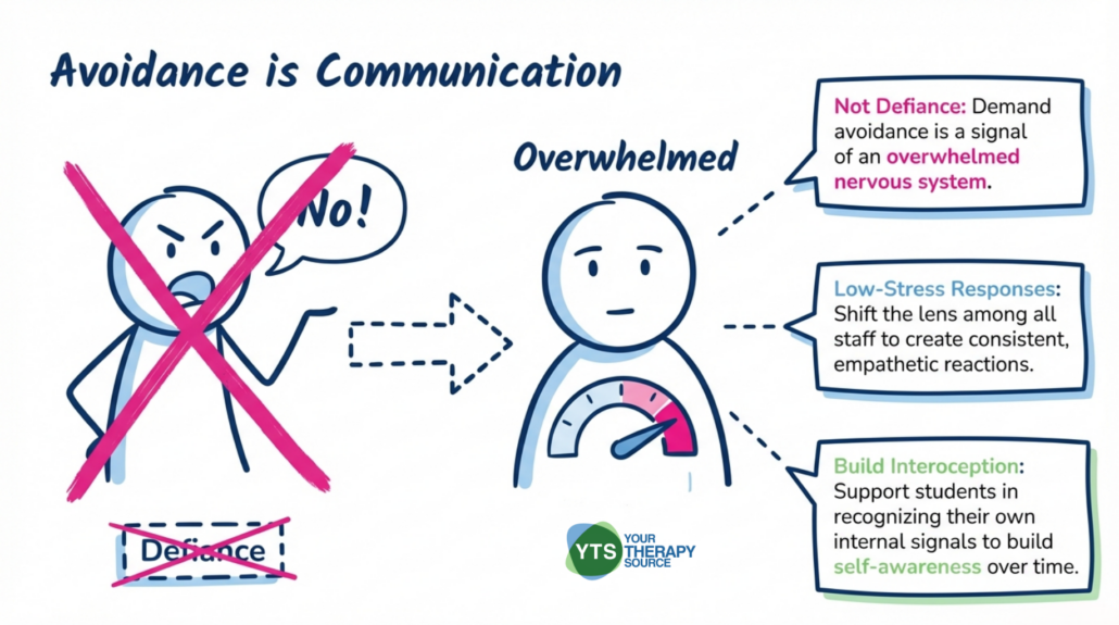 Understanding sensory processing patterns in students with PDA can help teams shift from a behavior-focused lens to an environment-focused one. For a closer look at how a student refusing to do work may be communicating unmet sensory or regulatory needs, that framing is a useful starting point for school-based planning.