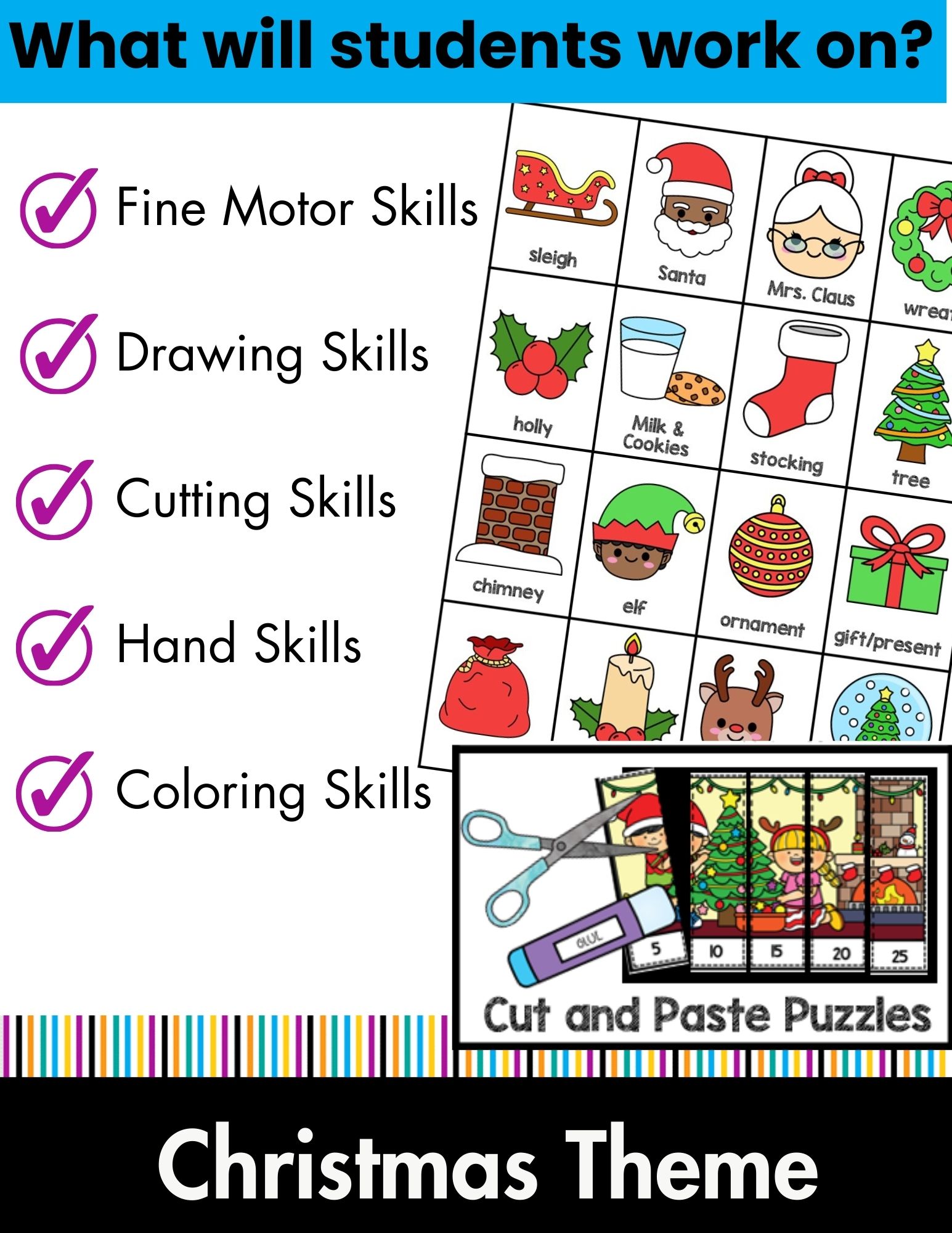 Save prep time with 20 ready-to-use Christmas centers perfect for morning work, task boxes, busy bins, early finishers, or occupational therapy sessions. Mix print-and-go pages with reusable laminated tasks to build scissor skills, hand-eye coordination, and visual perception all month long. Fun, functional, and easy to organize—just print, cut, and rotate for fresh fine motor practice every week!