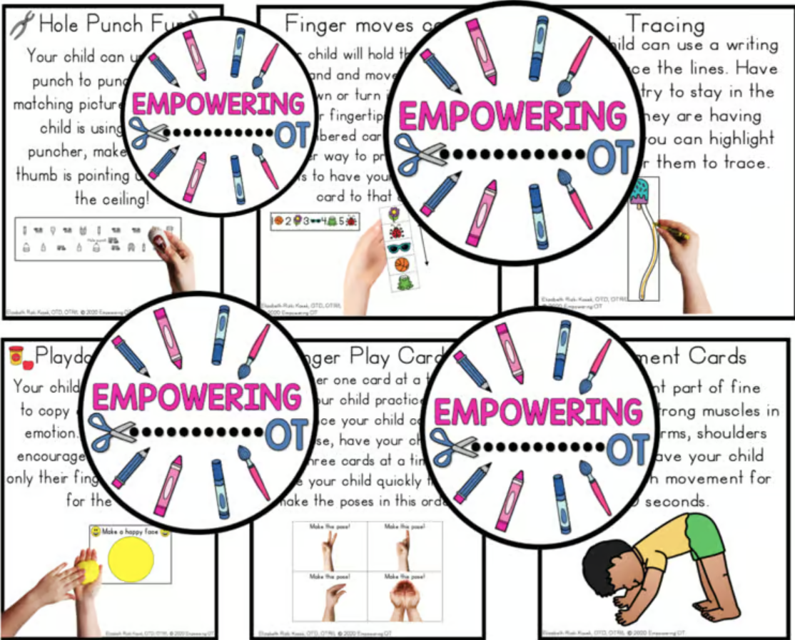 - Finger movement cards (2 pages / 2 cards) – printed pages