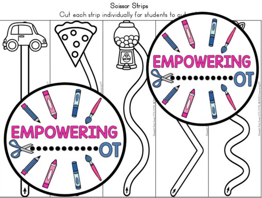 - Scissor strips (3 pages / 5 strips and 8 shapes) – printed pages & scissors