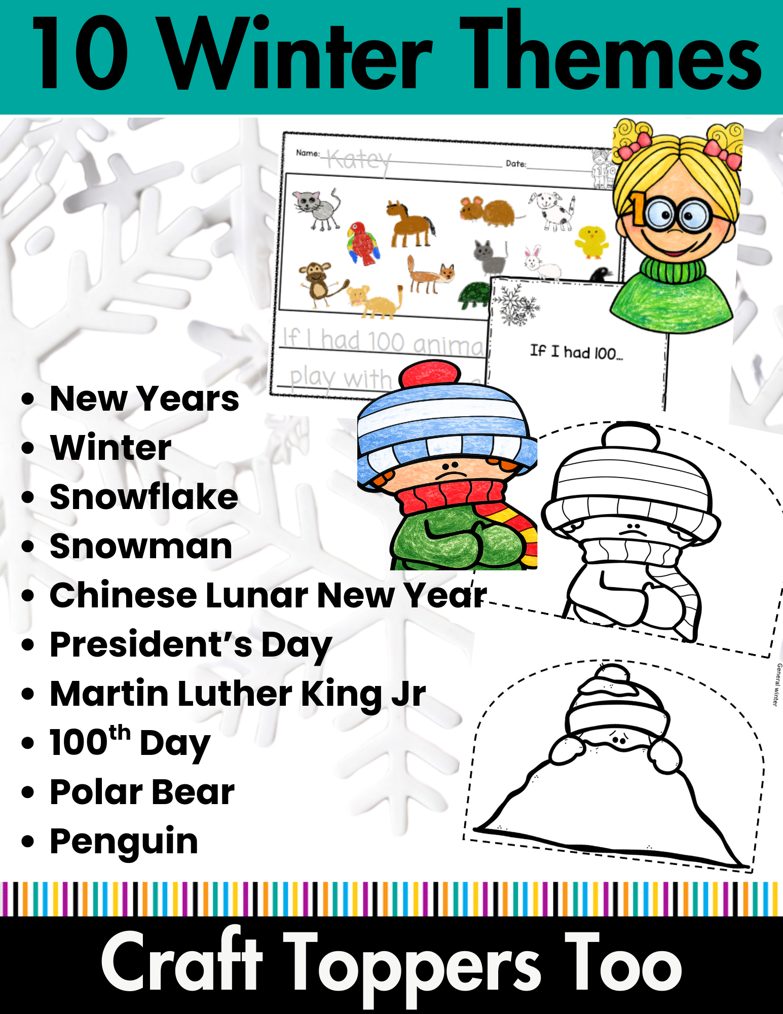 - 10 winter craft toppers for writing extensions, headbands, and bulletin boards