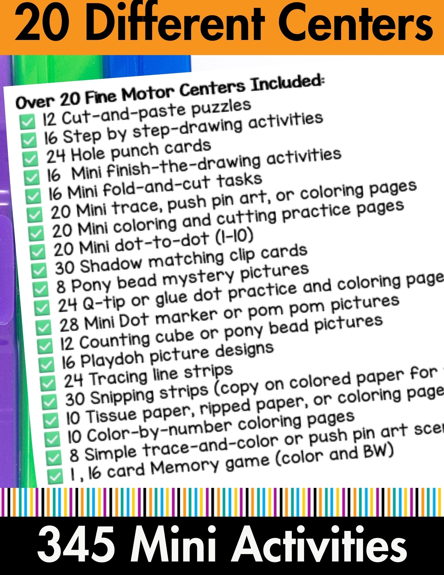 20 Fine Motor Centers Included (345 mini activities) in the September Fall Crafts and Fine Motor Activities: