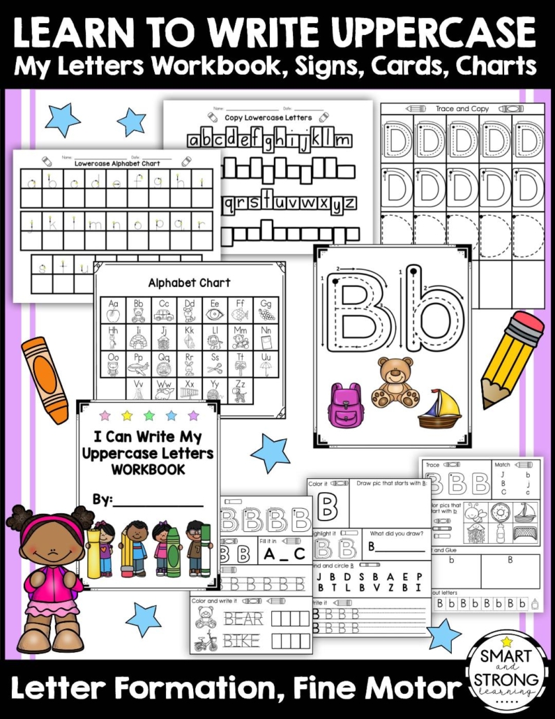 This bundle includes formation guidelines for writing lowercase letters, fun pictures, sight words, simple sentences, formation guidelines, interesting games,  and a large variety of content that you won’t find with other handwriting worksheets!